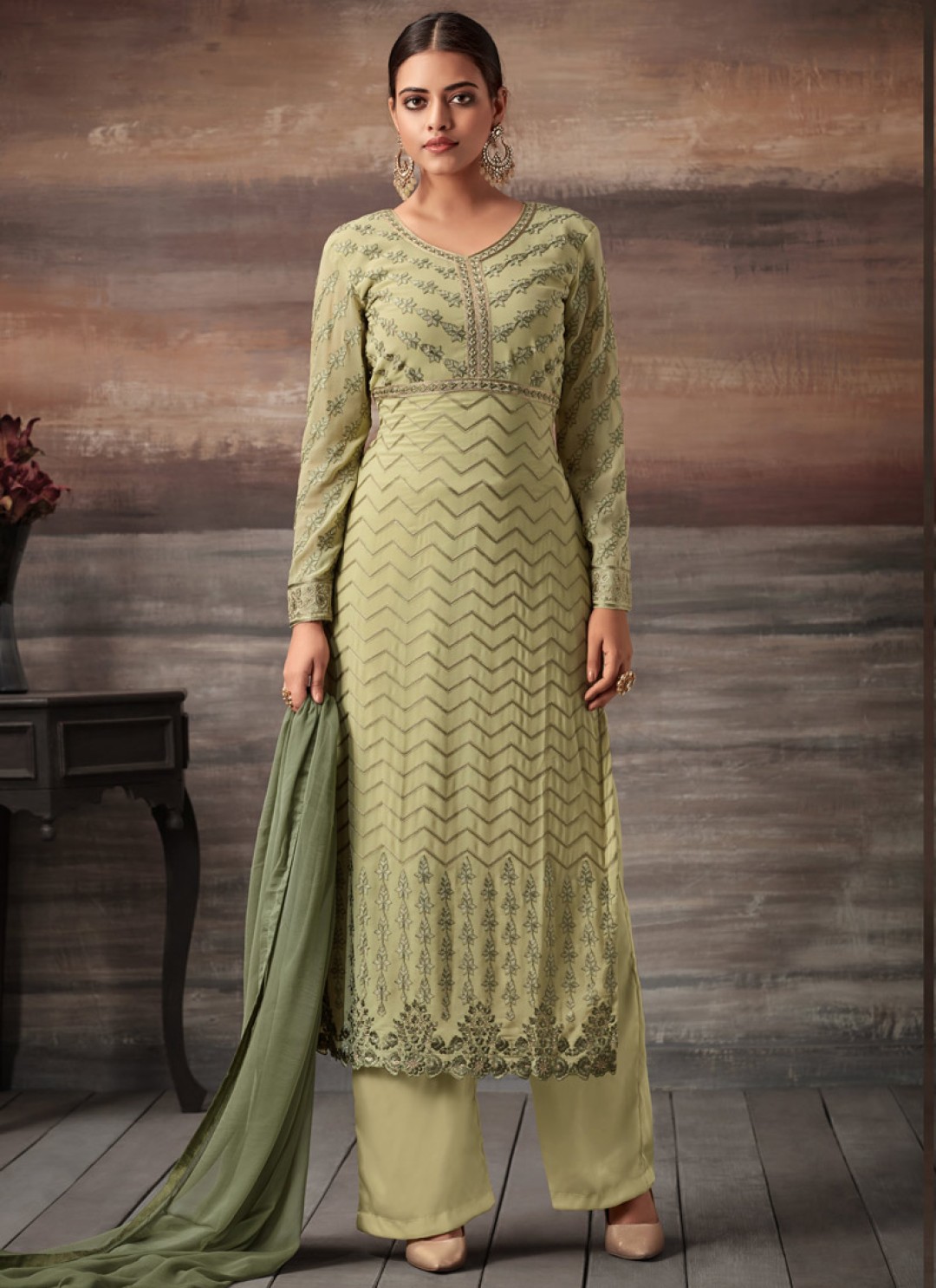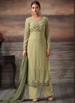 Beige Georgette Embroidered Straight Cut Suit Glamour Vol 48 48003 By Mohini Fashion SC/010221