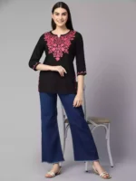Black Kashmiri Embroidered Short Kurti